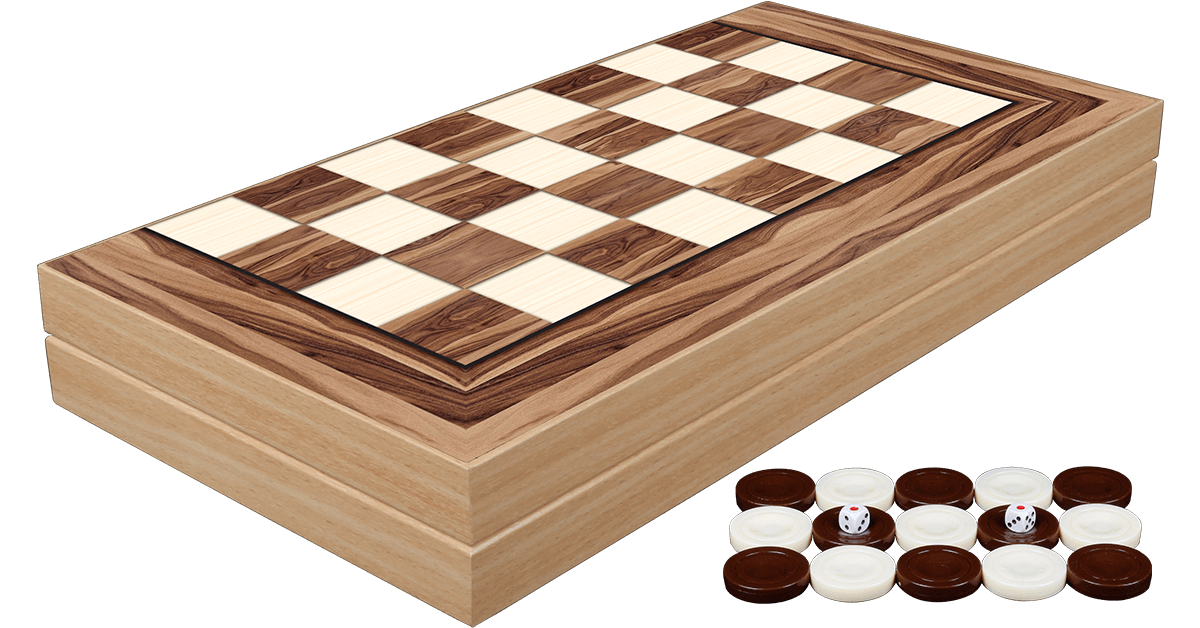 Backgammon: 19" Walnut Decoupage w/ Chess Back