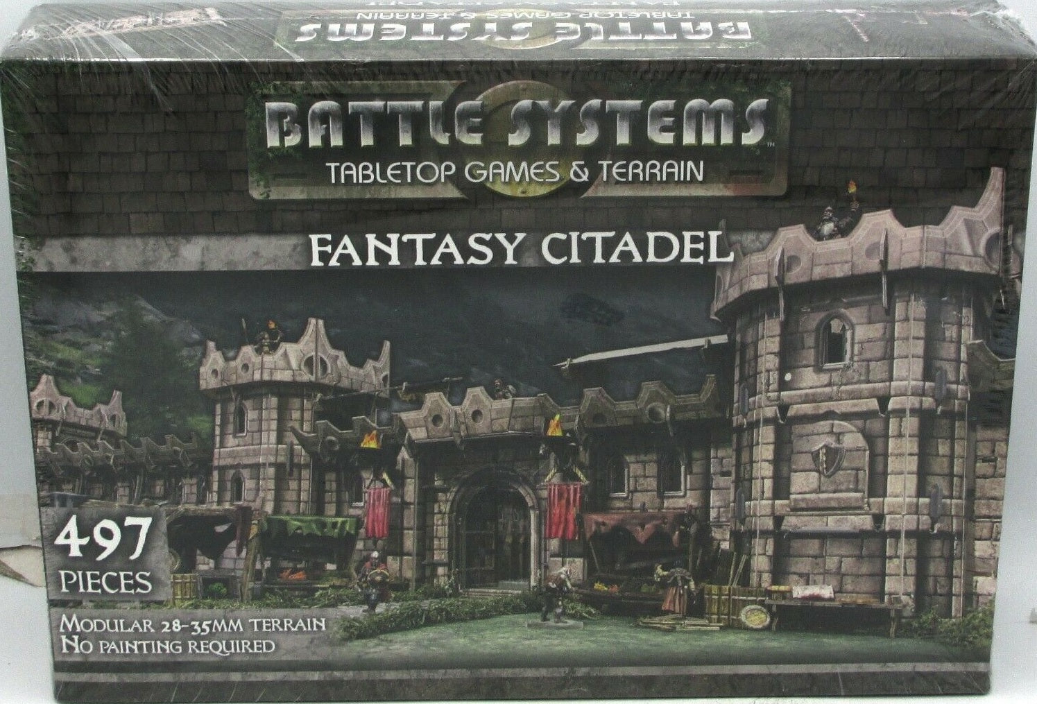 This box contains all the terrain you need for a complete gaming table built in or around a mighty castle, suitable for many 28-35mm fantasy and historical games. You can use the castle walls to surround a small skirmish board or build a longer fortification across a larger table. Many of the pieces are modular and can be assembled in any combination you choose for a different set-up every time. The roofs are removable and the buildings have fully detailed interiors.