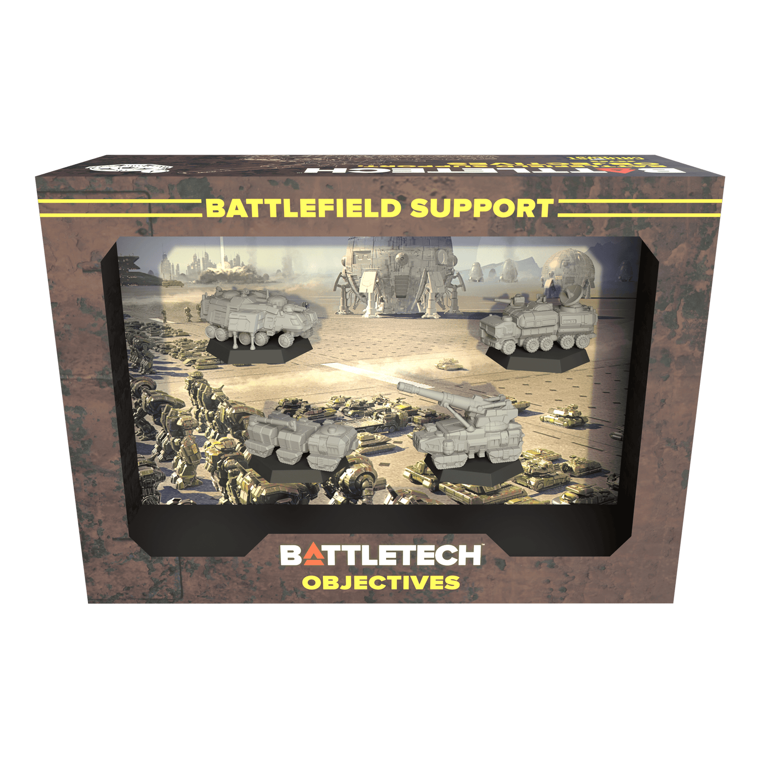 The BattleTech Battlefield Support: Objectives is a collection of four plastic miniatures for use in the classic BattleTech tabletop and Alpha Strike games. The box also provides three dry-erase cards, which are intended to directly support Alpha Strike gameplay, and three new crew Cards.