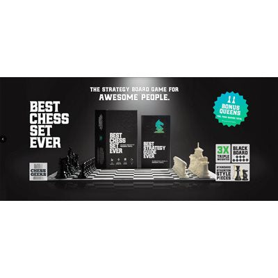 The Best Chess Set Ever takes the best of the chess world and compiles it all in one place. The Tournament style Staunton chess pieces are large, easy to handle and have a weighted, felted base that makes them perfect for indoor our outdoor play. The Silicone board lays flat, and wipes clean so you don't have to worry about spills or creases. We also include our 32 page guide, “The Best Chess Strategy Guide Ever”. This guide features illustrated instructions that can help players of all skill levels whether you are just learning, or you are looking to take your skill to the next level. All of the components fit neatly into the included game box so you can take the Best Chess Set Ever with you everywhere.