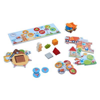Building Site manager Bruno Bear needs help with building a house. Players must find matching traffic cone tiles and drive them to the construction site with the dump truck. Step by step, the foundations, walls, roof, and garden take shape. Finding out about what construction workers do makes every player a winner.
