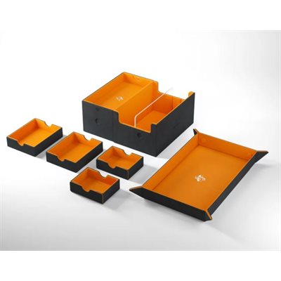 It contains a total of 4 drawers: 2 removable drawers with ingenious magnetic flaps for sleeved cards or tokens plus 2 additional extra-large trays for even more tokens, dice, accessories, etc. The top-level compartment of the Games’ Lair 600+ can be used for life pads, oversized cards, traditional writing pads, to store pen-and-paper accessories, etc.