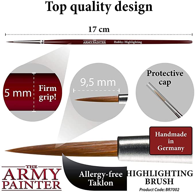 A great all round brush for making detailed highlights on your models. The tip is sharp making it useful for those hard-to-get areas of a miniature.