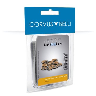 Blister of ten unpainted injected thermoplastic 25 mm bases. Designed exclusively for Infinity miniatures, these scenic bases have Line of Fire markings to improve the playability of your models. Supplied unpainted.