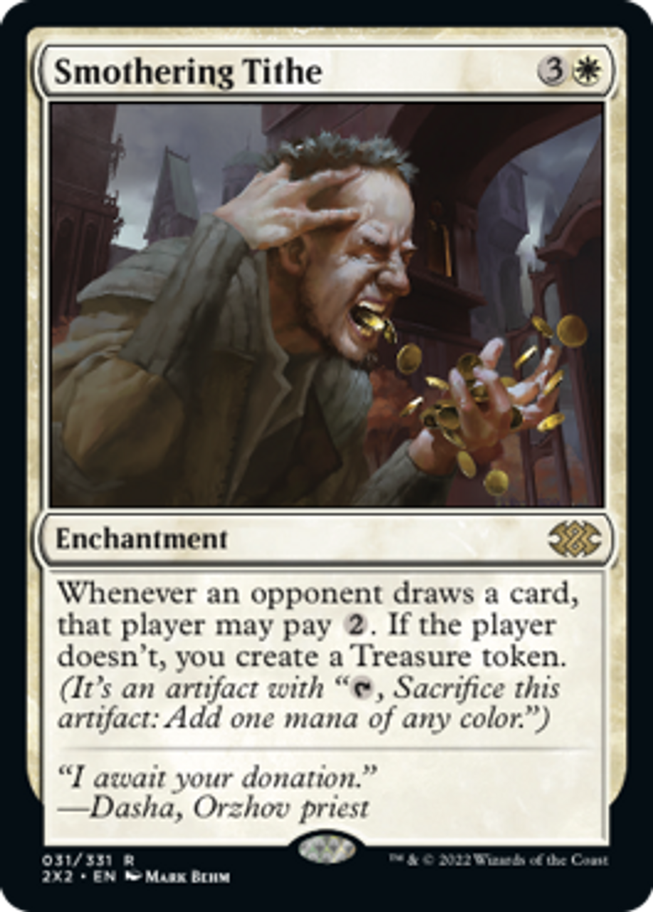 Whenever an opponent draws a card, that player may pay {2}. If the player doesn't, you create a Treasure token. (It's an artifact with "{T}, Sacrifice this artifact: Add one mana of any color.")