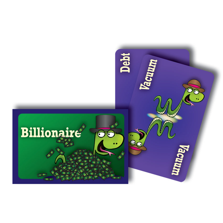 To set up Snake Oil, each player takes six purple word cards. The customer for the round draws a customer card and announces it. Inventors quickly combine two purple word cards from their hand to form a crazy new product to sell to that customer. When ready, each inventor quickly pitches his or her product directly to the customer. The customer can end any pitch that goes longer than thirty seconds. The customer decides which product to buy and gives the inventor of that product the round's customer card as the prize. Inventors discard all used word cards and take two new word cards each. The player to the left of the customer becomes the next round's customer. Play repeats until each player has been the customer once.