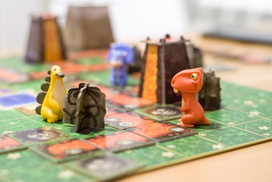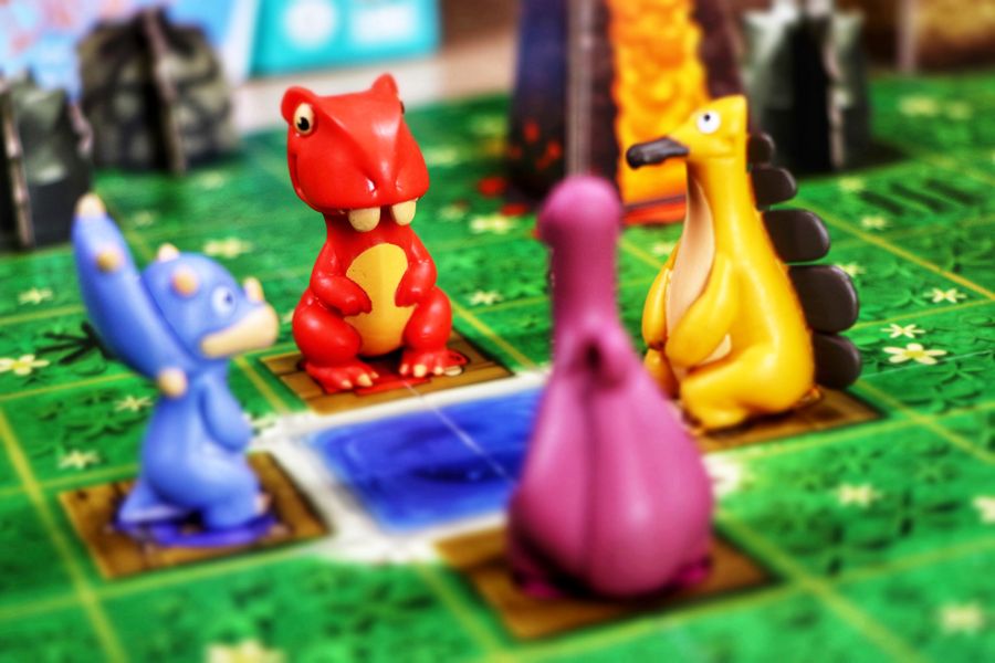 You need to react, anticipate, and work together as a team to save the four dinosaurs in SOS Dino! Draw a tile, place it on the board, then move one of the dinosaurs closer to the safety of the mountains. Pay attention to lava and meteor showers!