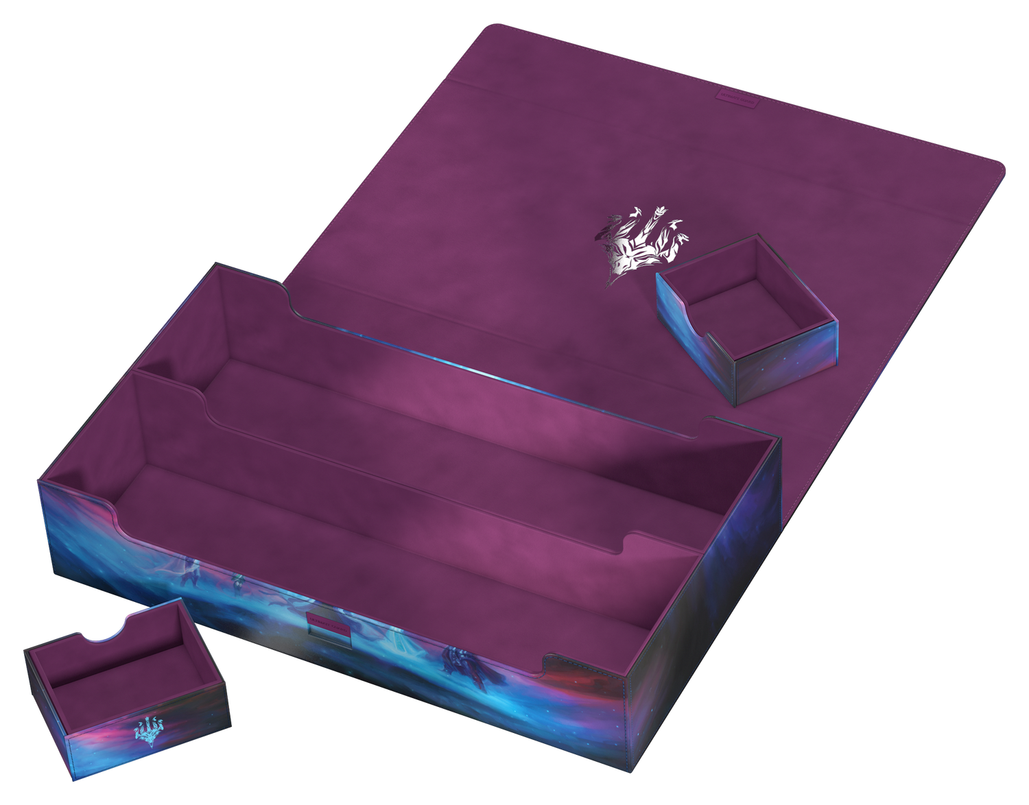 - Two magnetic trays for flexible positioning and storing of accessories or double-sleeved cards