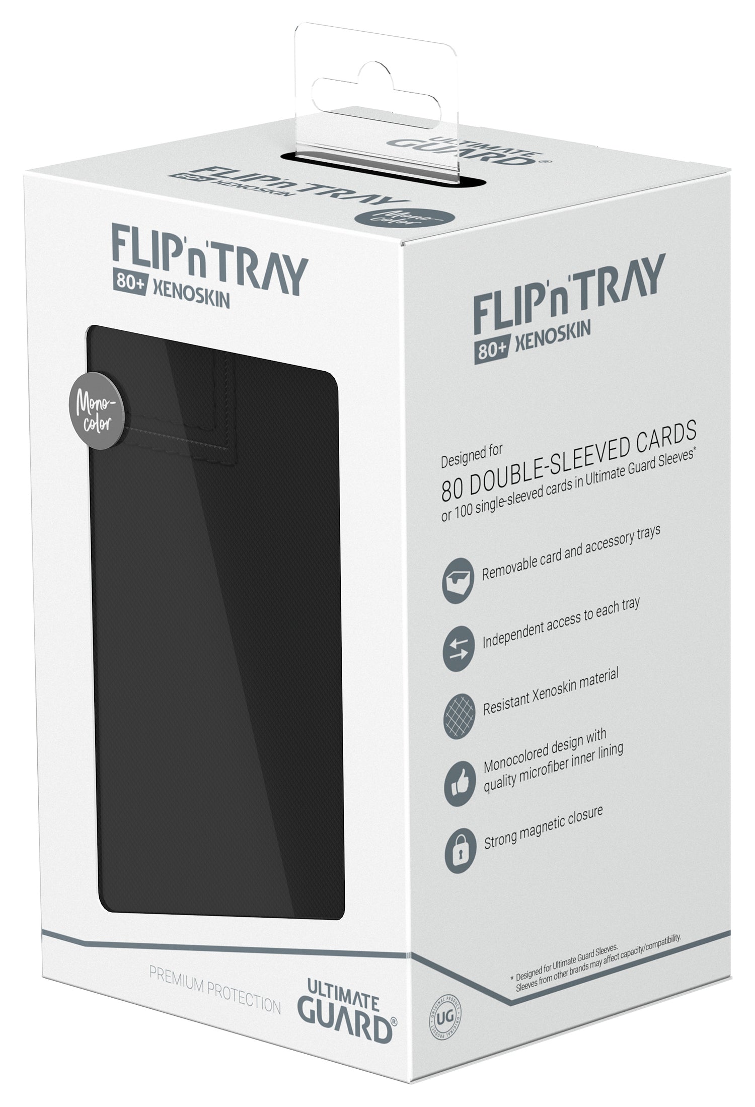 The quintessential Ultimate Guard deck box: a timeless design with strong magnetic closure, card and dice trays for safe storage of your deck, and a resistant but smooth Xenoskin surface. Looking for additional safety? Exchange the card tray with one of our Ultimate Guard Boulder 80+’s. With room for 80 double-sleeved or 100 single-sleeved cards in standard size, the Flip’n’Tray 80+ has it all.