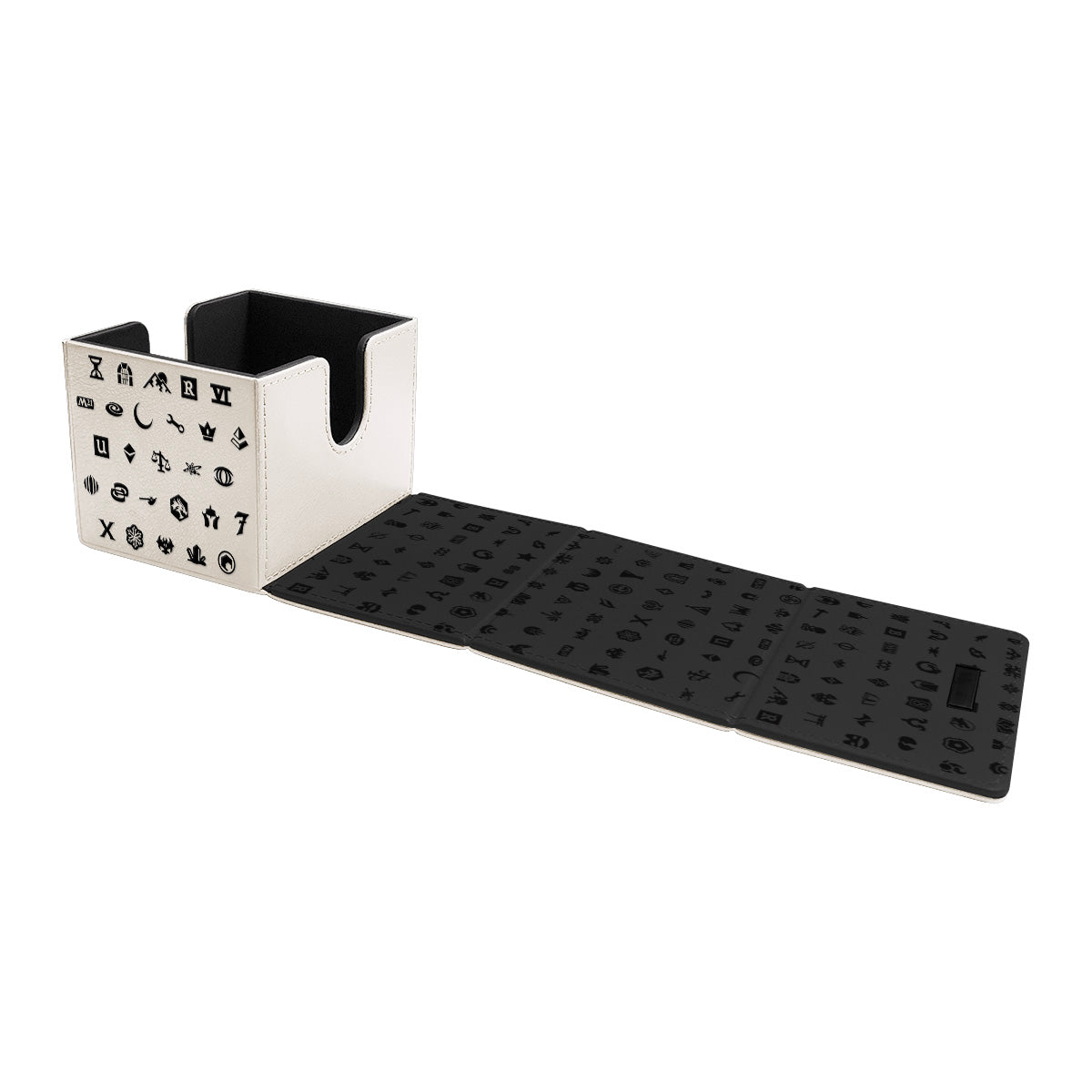 Alcove Edge Deck Boxes for Magic: The Gathering feature a vibrant, full-color leatherette finish, strong magnetic closure, and dual thumb notches for easy access to your deck. This deck box holds up to 100 standard size trading cards double-sleeved in Ultra PRO Deck Protector sleeves.